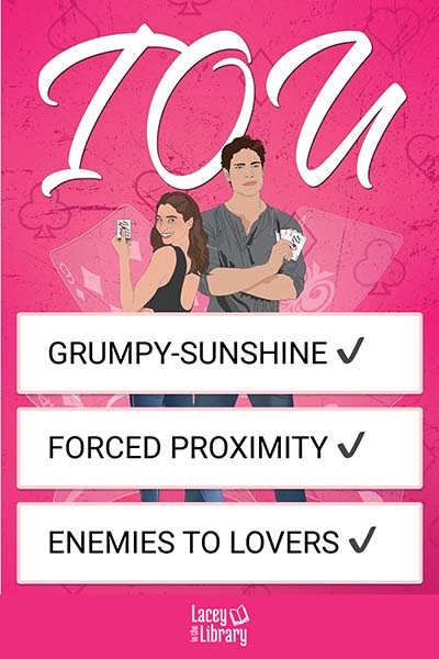 IOU is a standalone romantic comedy with forced proximity (roommates), a bad boy hero, and a deal with the devil (but in a cute way.) Reading this book comes with the side effects of spontaneous giggling, excessive swooning, and the sudden urge to make questionable deals with attractive strangers. Reader discretion is advised.
